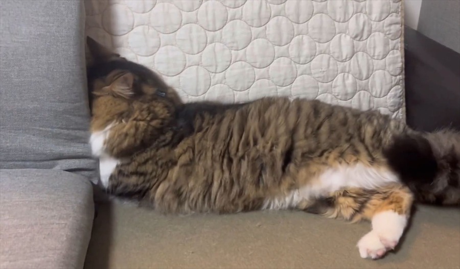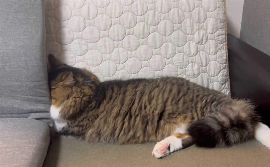 ・寝るにゃ!話しかけてこないでにゃ!という姿ですね。