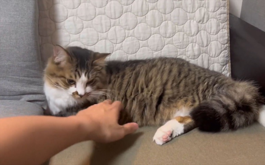 おやつの時だけムキムキに豹変!?夢中でむしゃむしゃしているネコが話題も「がっついていてかわいい」「絶対に逃さないという意思を感じる」