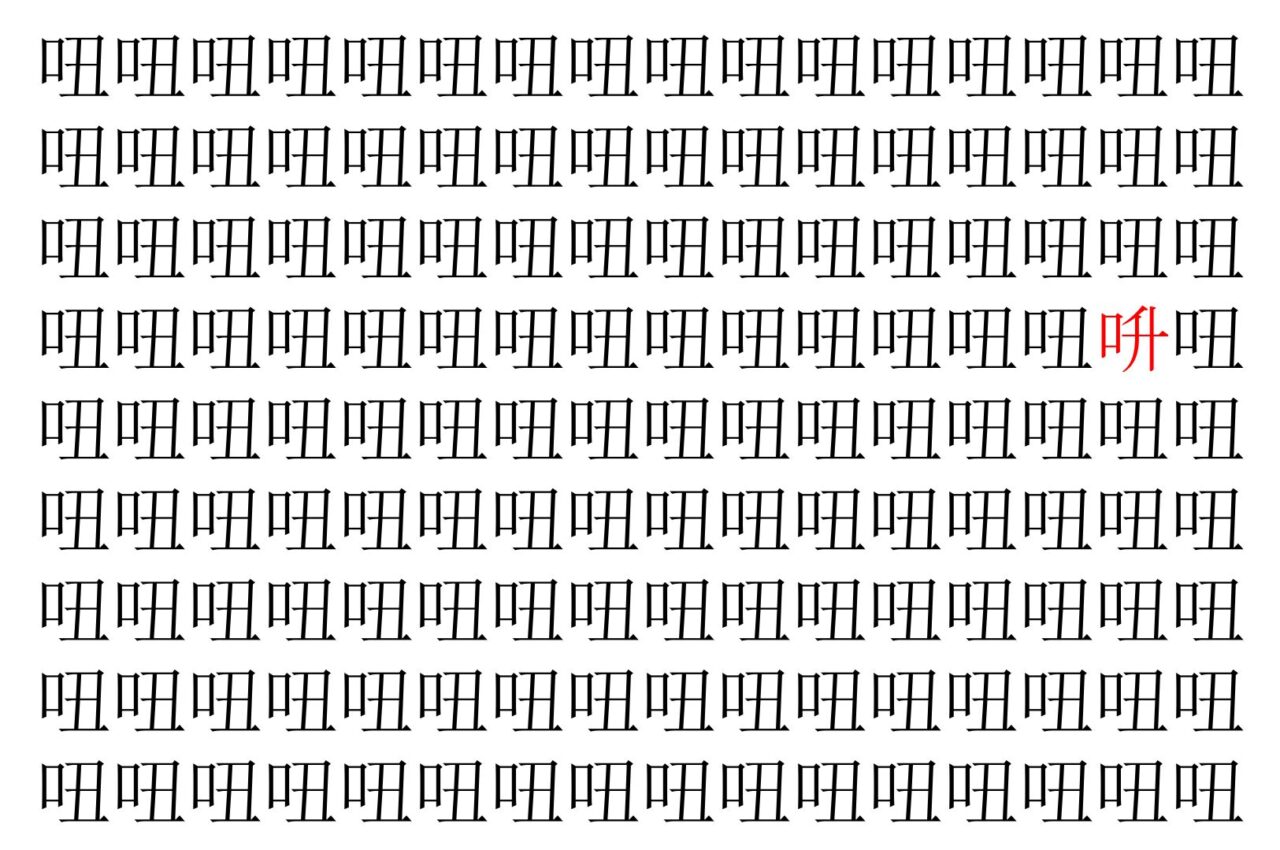 【脳トレ】「吜」の中に紛れて1つ違う文字がある!?あなたは何秒で探し出せるかな??【違う文字を探せ!】