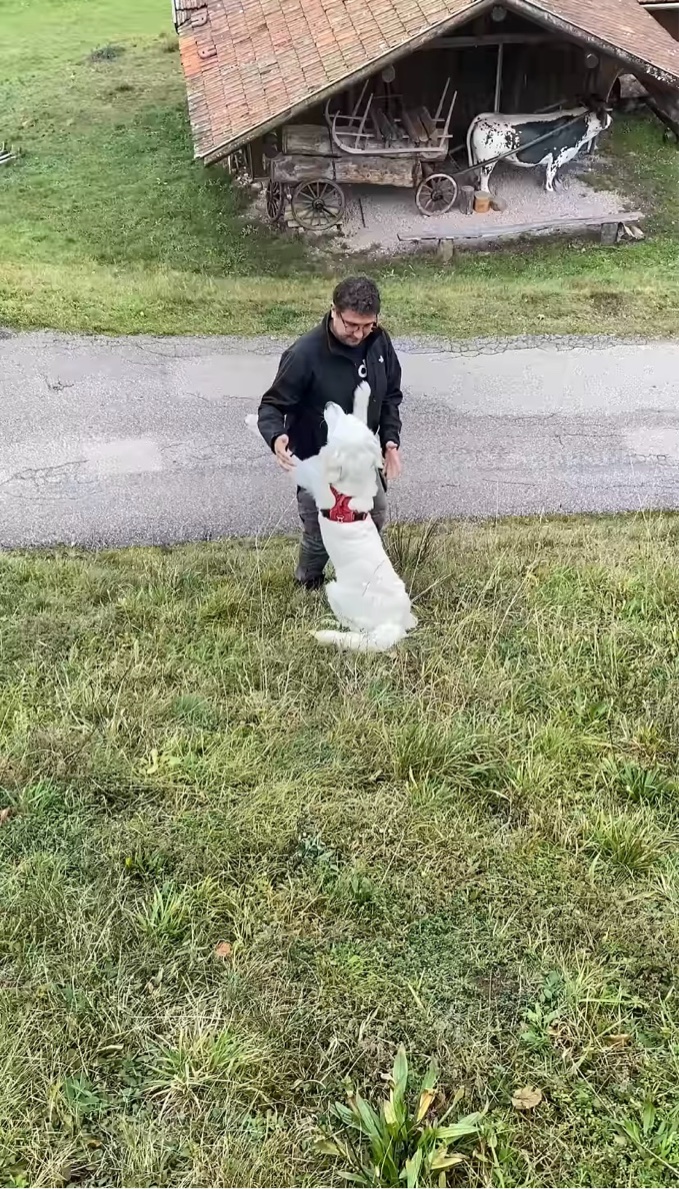 はしゃぐ愛犬とパパさんの身に起きたハプニング。