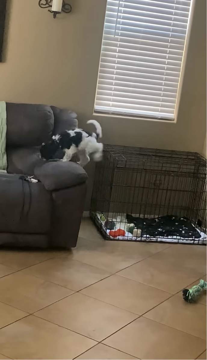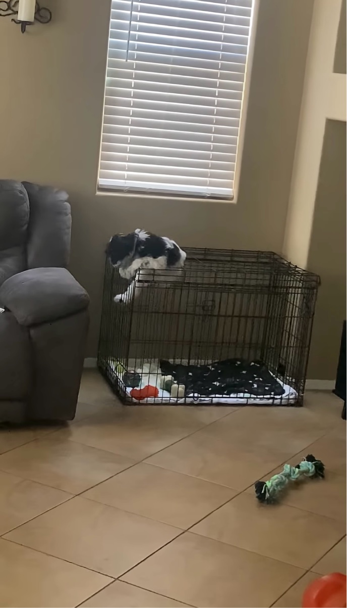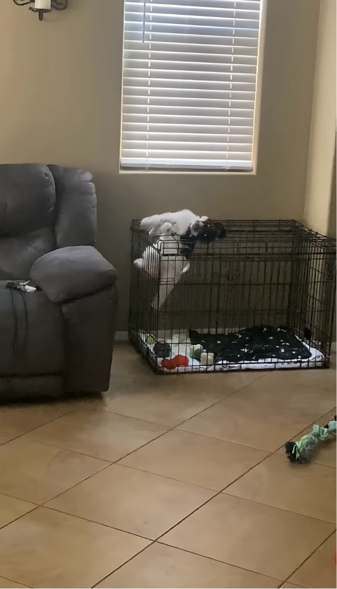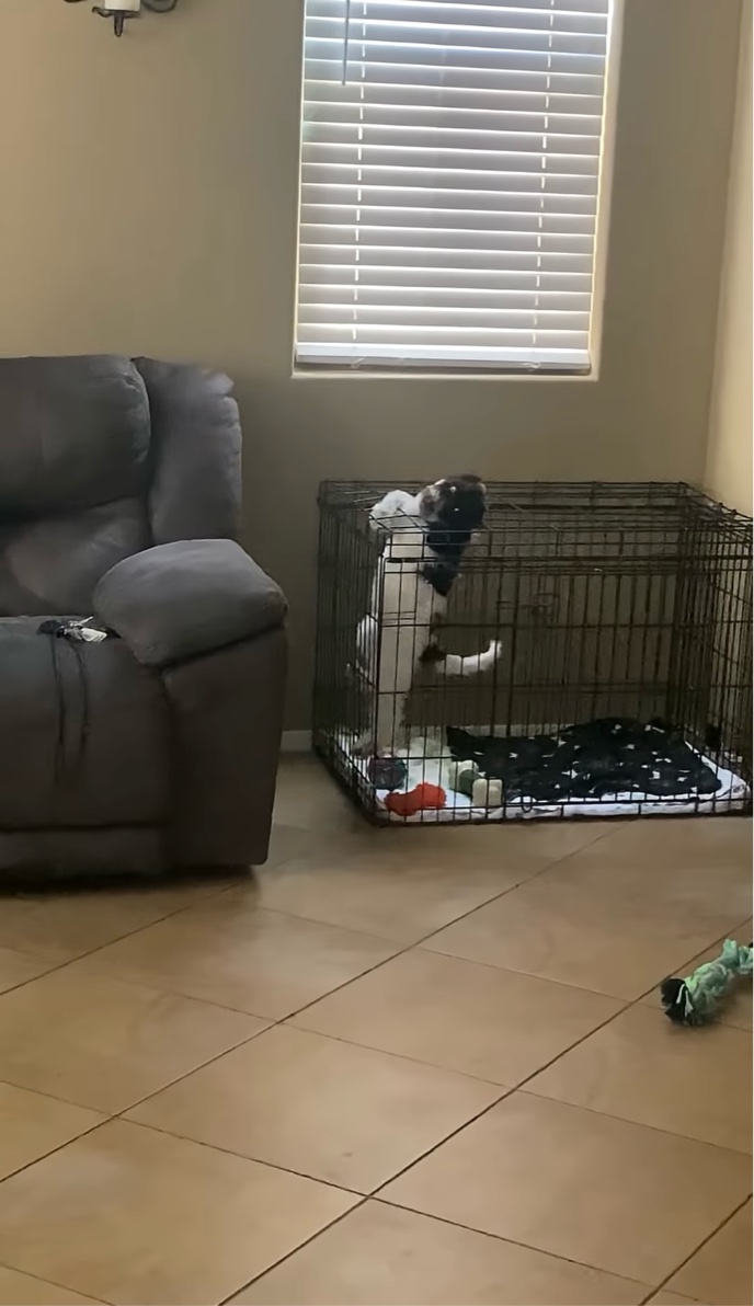 ケージから脱出を試みる子犬の姿は、こちらの動画からご覧いただけます。