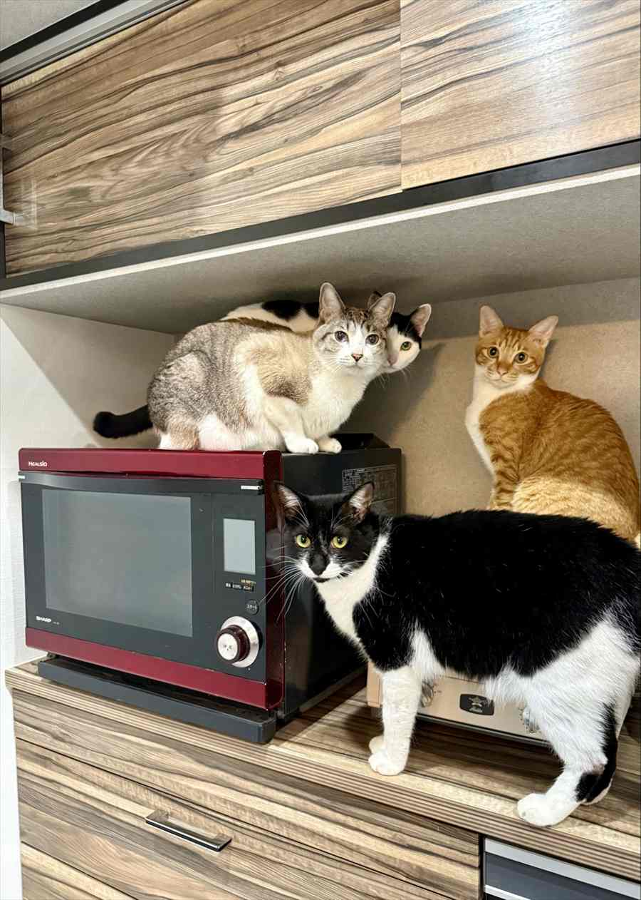 レンジ周りに集まったネコたちの姿に反響