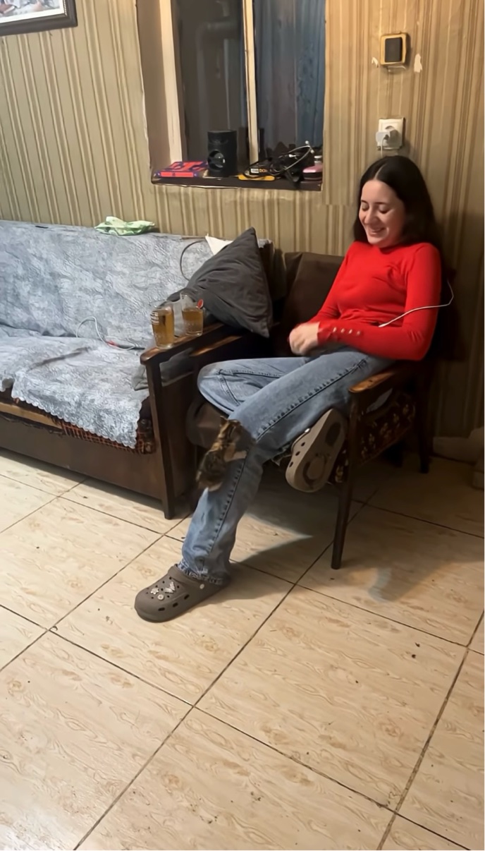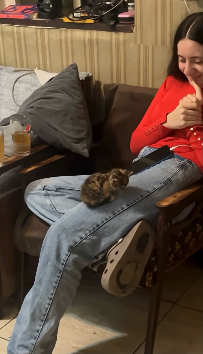 視界に入る子猫の無邪気で愛らしい姿に、飼い主さんは笑みがこぼれてしまっていますね!