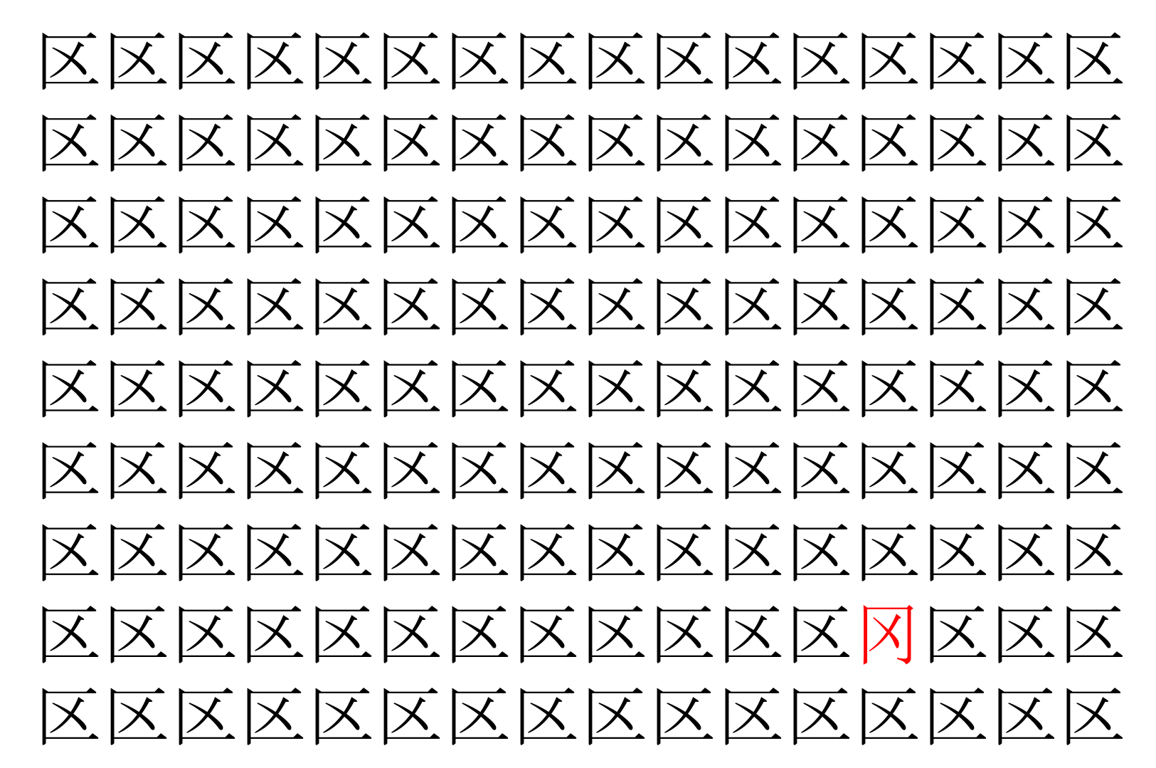 画像の中には、「区」という漢字が縦に9行、横に16個並んでいます。