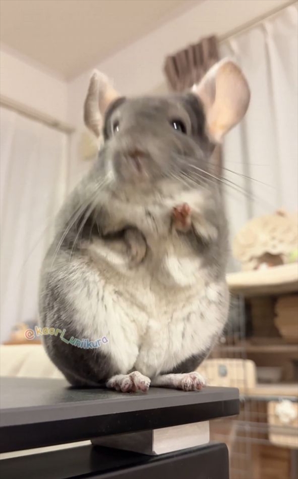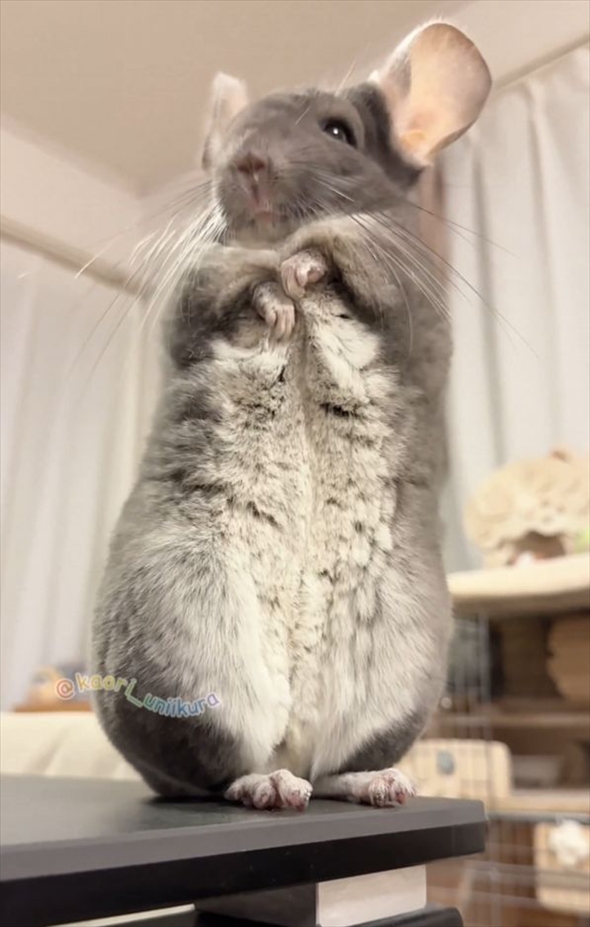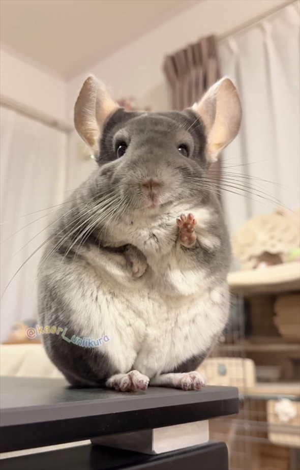 おててぱぁ!ポーズを取るチンチラがかわいすぎる 「笑顔でパワーをくれたから今日はきっといい日になる」「観音様ですね」