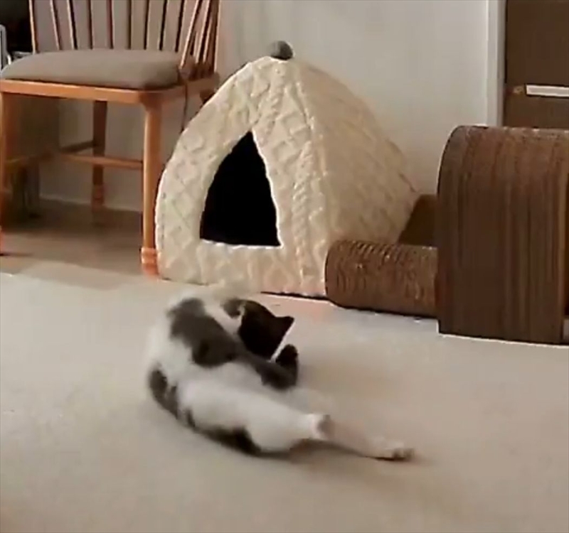 見守りカメラが捉えた、おもちちゃんがくつろいでいる様子は、こちらの投稿内の動画からご覧いただけます。
