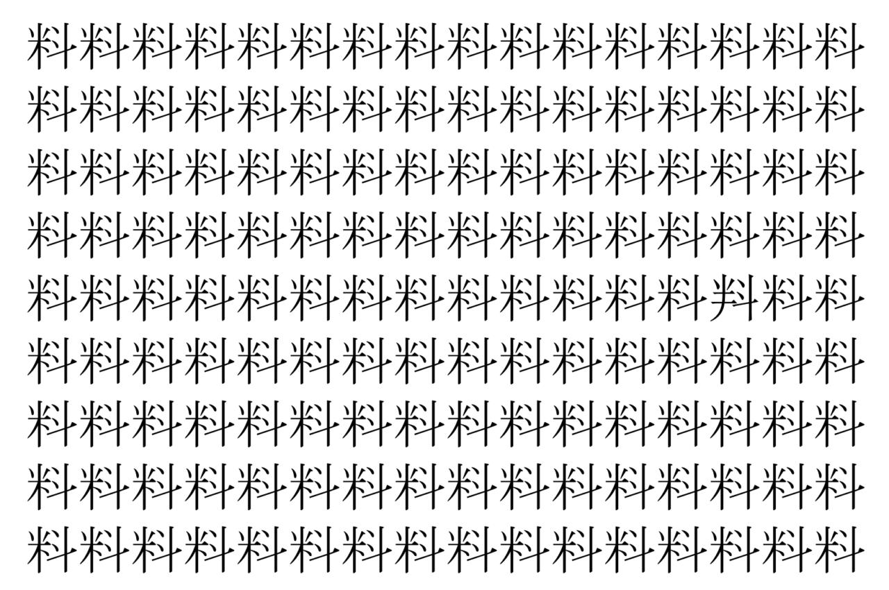 画像の中には、「料」という漢字が縦に9行、横に16個並んでいます。