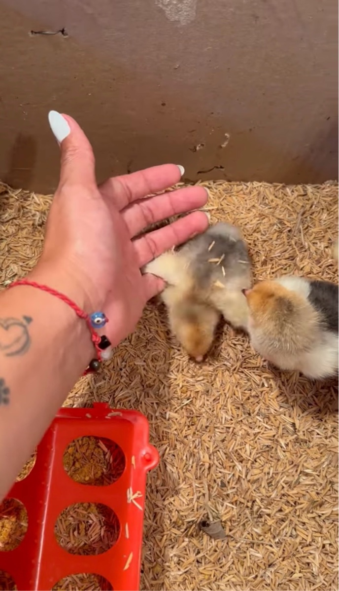 そんなヒヨコを、手を添えて優しく起こしてあげた飼い主さん。