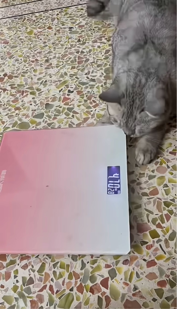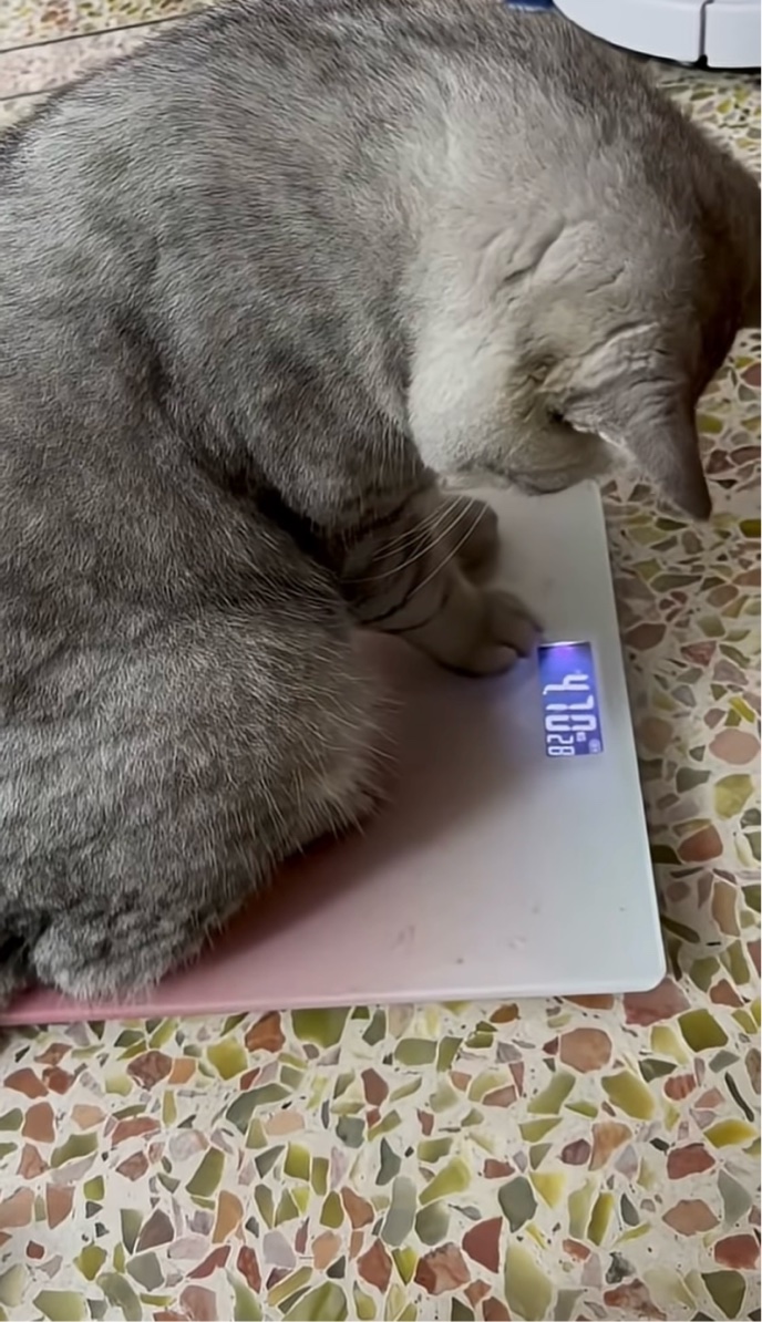 このネコのリアクションには、「自分の体重に満足していないようですね」「ダイエットの成果が出ていなくてガッカリしているのでしょう」「天才!」といったコメントが届いていました。
