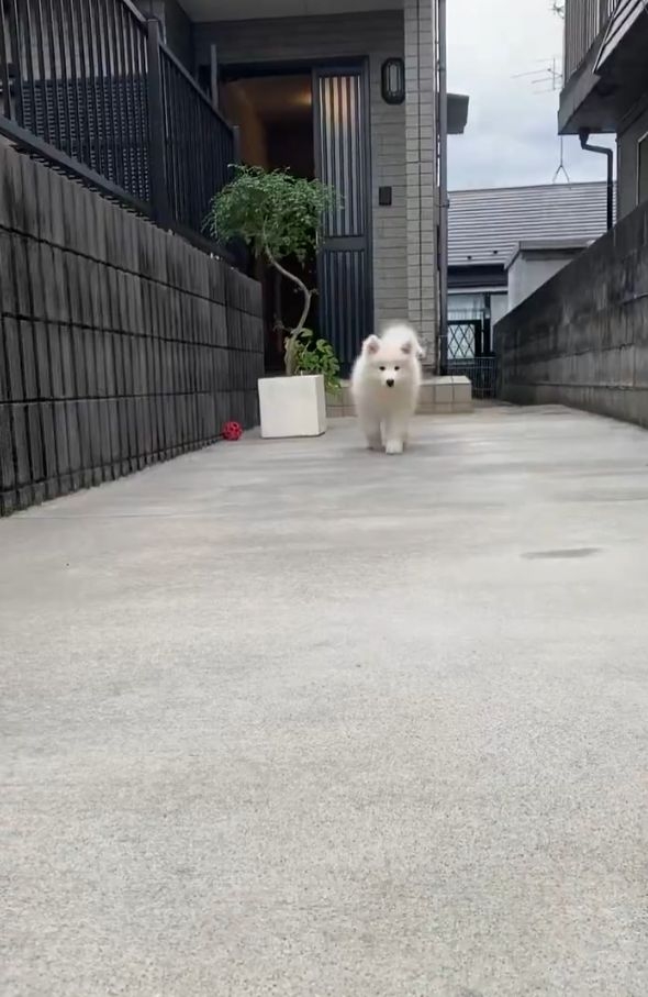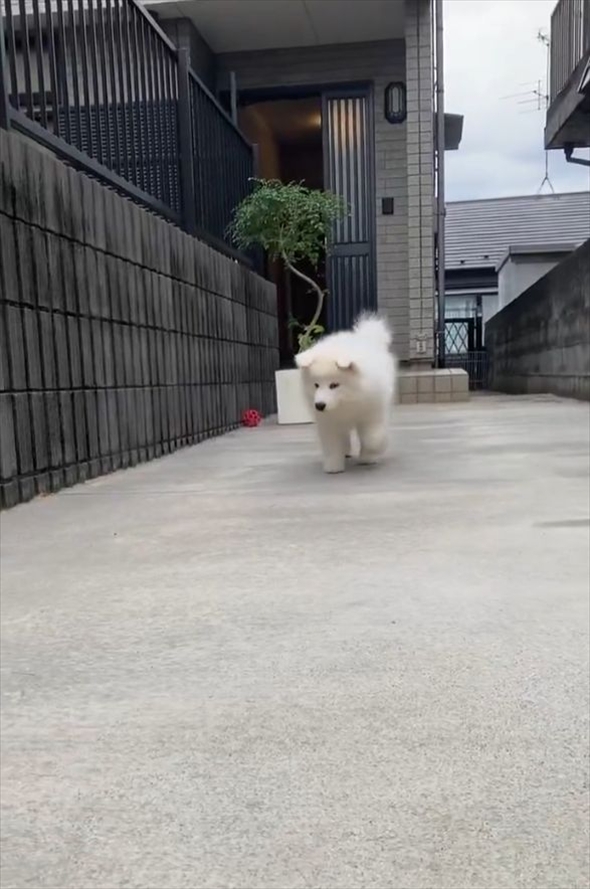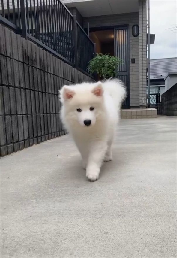 そんなサモエドが耳をぺコンペコンさせながら歩いてくる、かわいい姿が話題となっています!