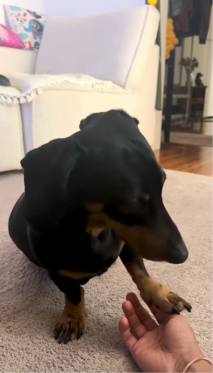 ダックスフンドの愛らしいリアクションが紹介されています。