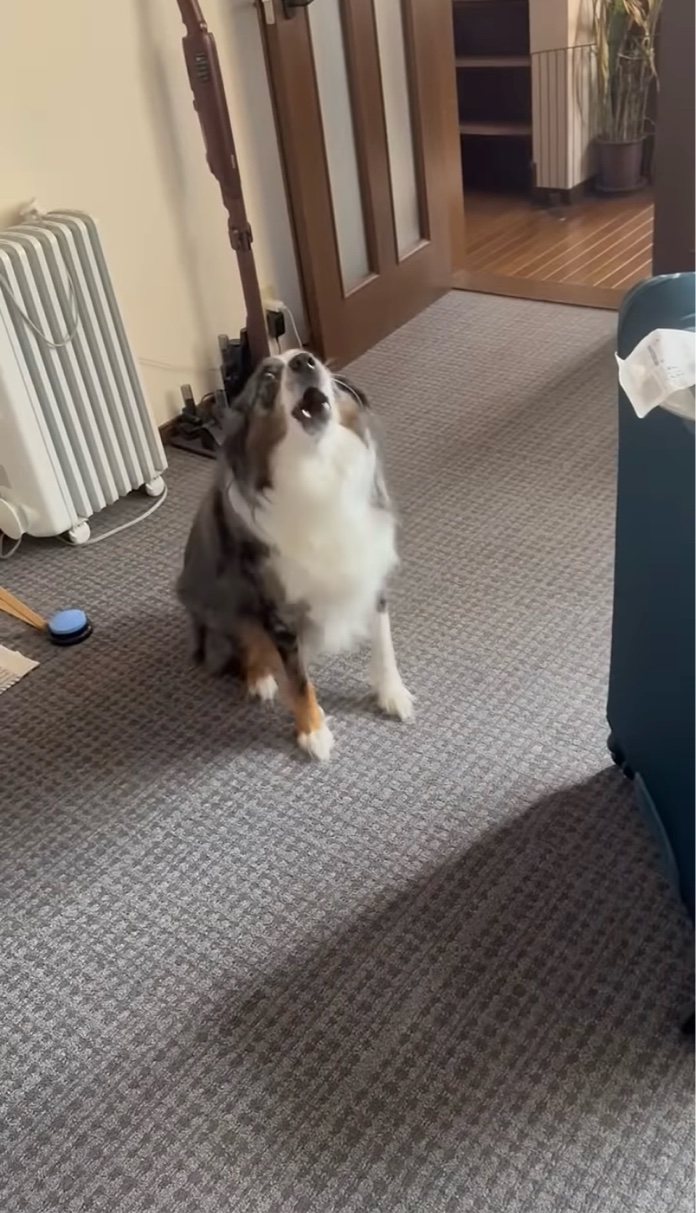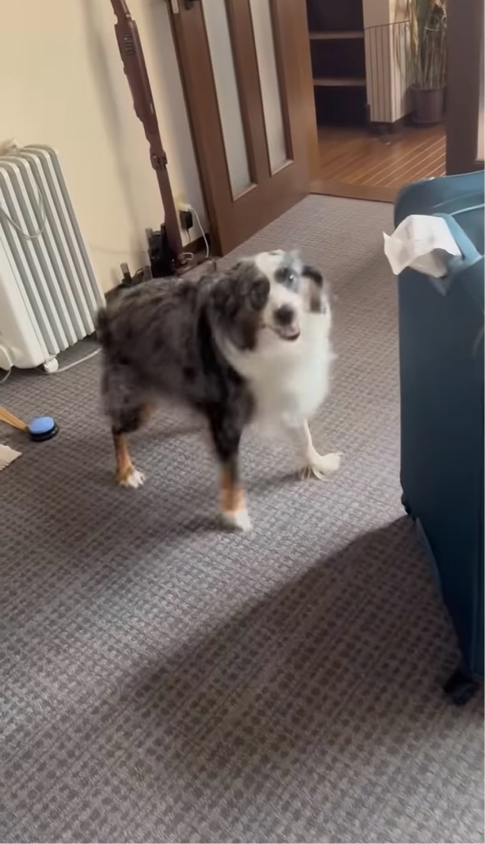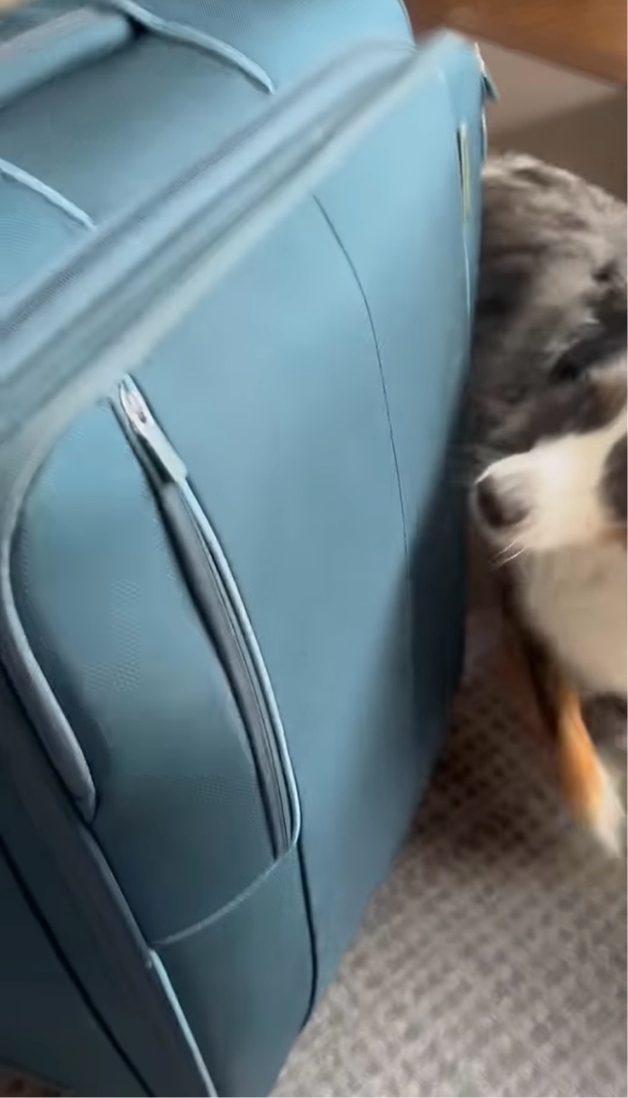 海外出張中のパパさんのスーツケースだけが自宅に戻ってきた際に愛犬がリアクションをご紹介します。