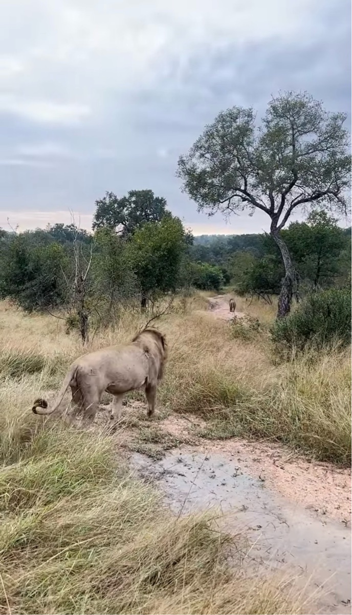 この地を訪れた撮影者さんは、2頭の雄ライオンが縄張りを見回りしているところに遭遇しました!