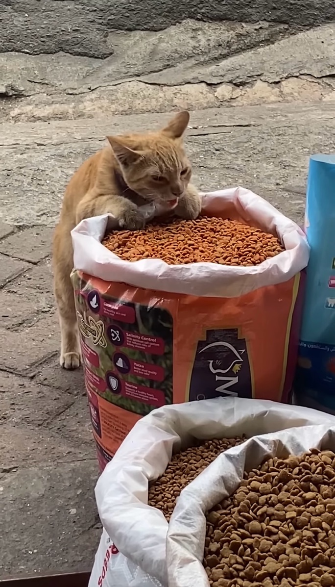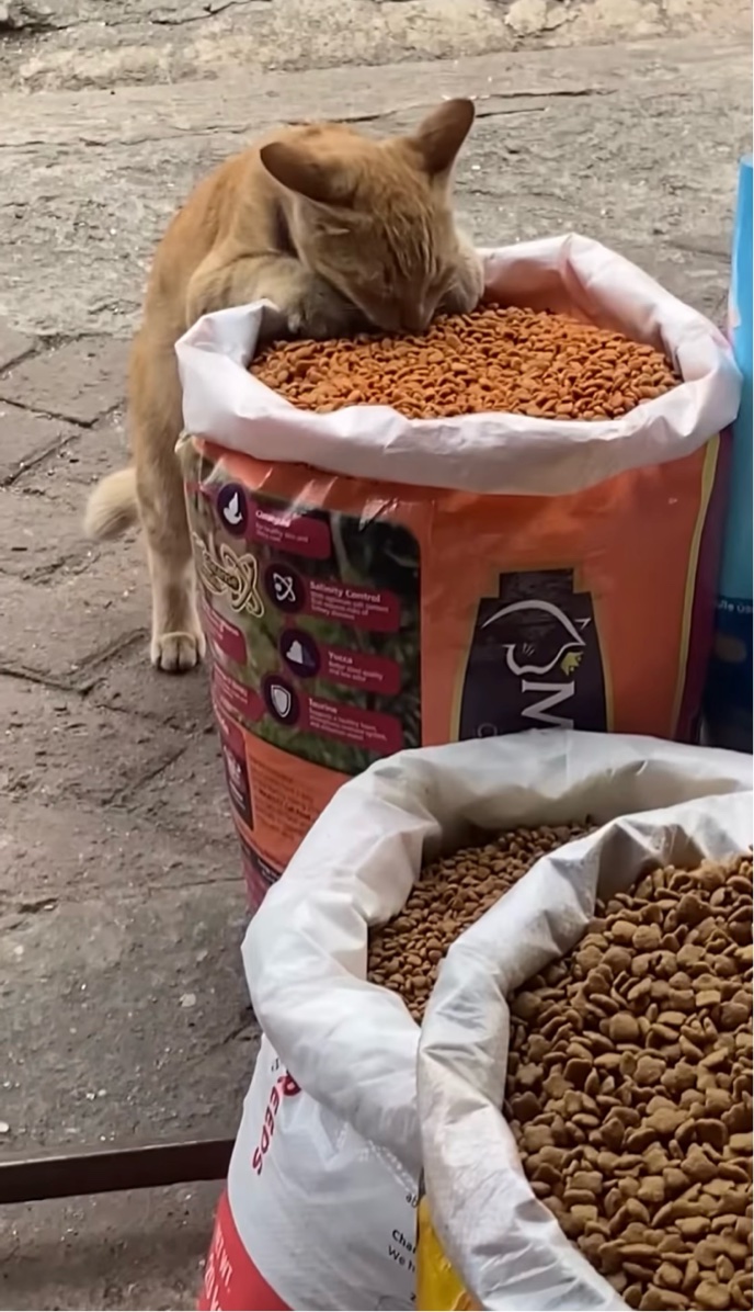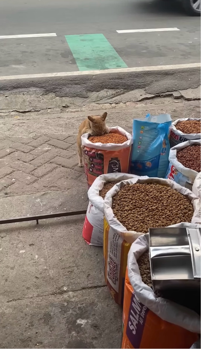 食べ放題会場?屋台に並ぶ売り物のペットフードをネコが堂々とつまみ食い!?【海外・動画】