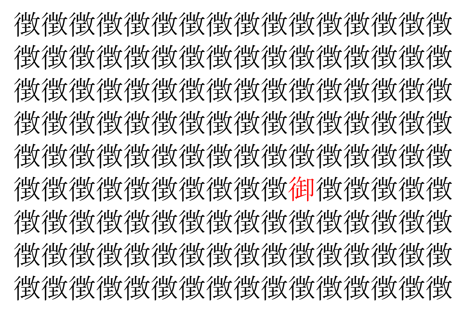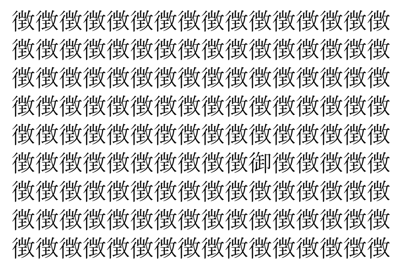 【脳トレ】「徴」の中に紛れて1つ違う文字がある!?あなたは何秒で探し出せるかな??【違う文字を探せ!】