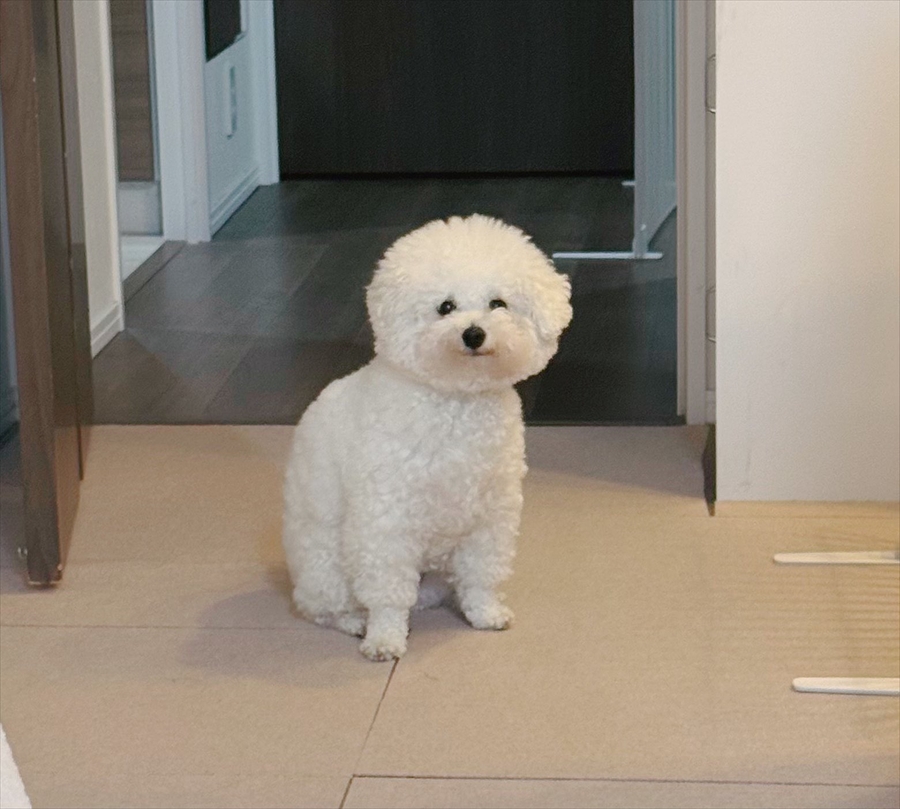 こちらは、バナナが好物だというビションフリーゼの『つくね』ちゃん。