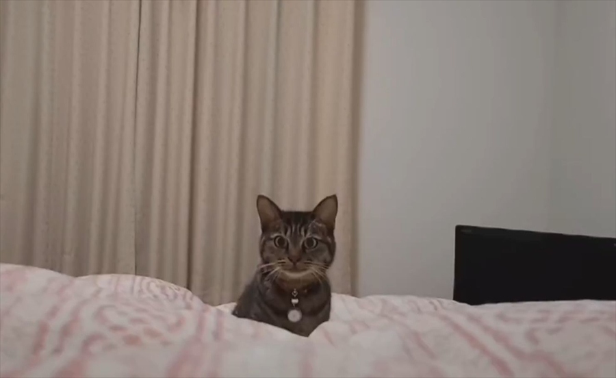 昨夜、遊んでくれずに先に寝たと思っていた飼い主が 実は起きていたと気付いたネコチャン。 pic.twitter.com/uI9AOHhIpg