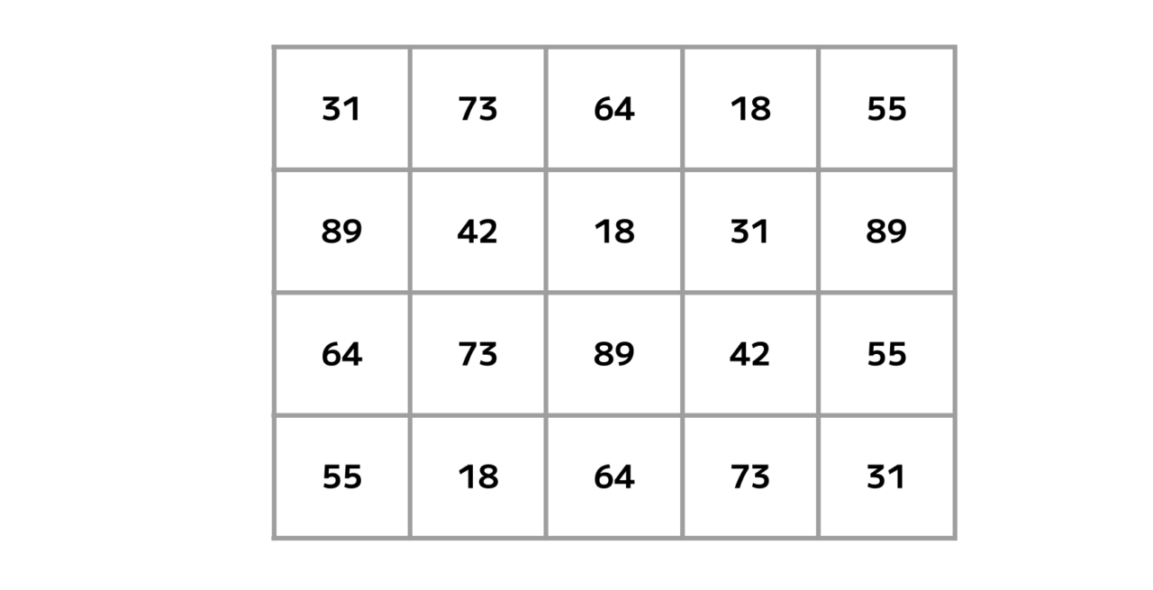 表を埋める「18・31・42・55・64・73・89」という7種の数字。