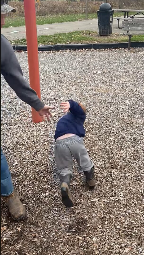 パパに抱きかかえてもらい、地面におろしてもらいます。