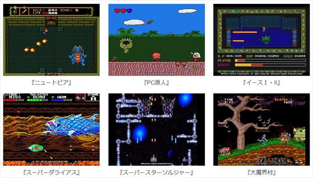 「PC原人」や「大魔界村」、「スーパースターソルジャー」など、懐かしいタイトルが満載。画面を見ていると、当時遊んでいた記憶がよみがえりますね。
