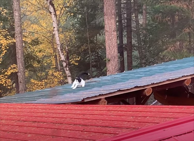 猫が屋根の上を飄々と歩いている・・・と思いきや、その猫の身にまさかまさかのアクシデントが!