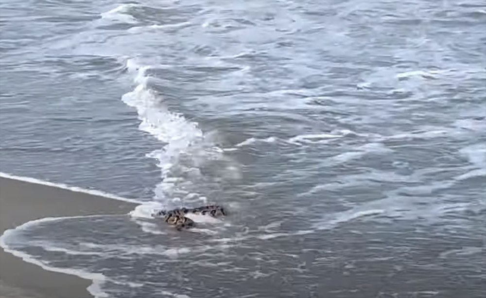 波打ち際に姿を見せたガラガラヘビ。