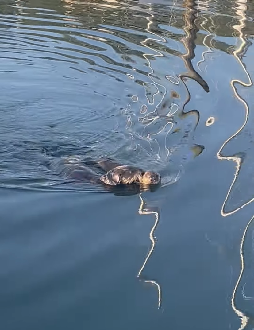 ボートハーバーで仲良く暮らすラッコの親子が、並んで泳ぐ様子を目撃した撮影者さん。