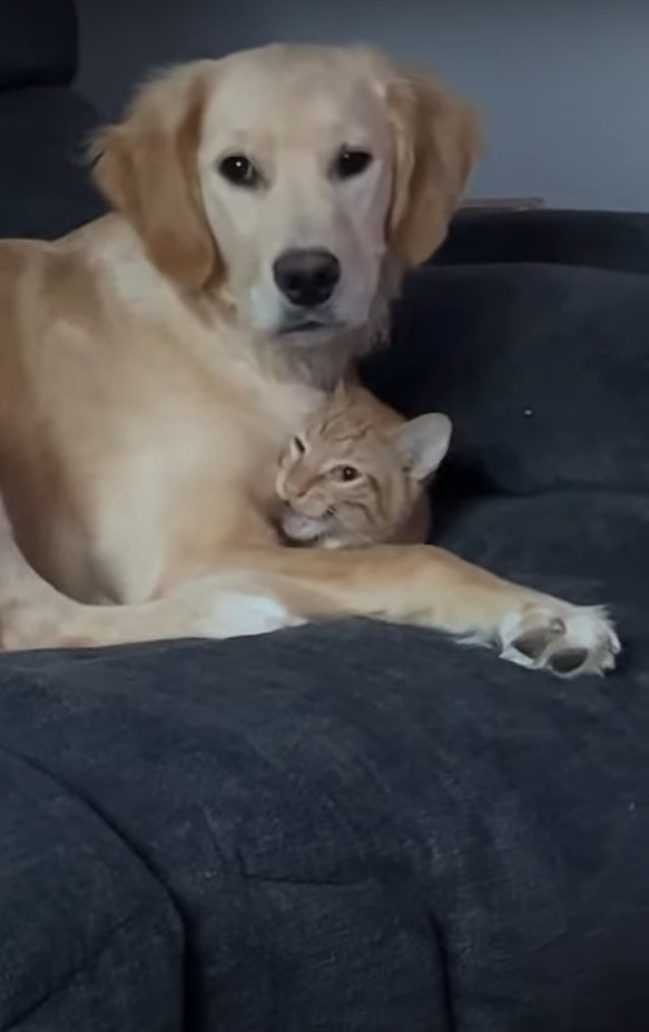 ギュッと子猫のことを抱きしめているゴールデンレトリバーの様子は、こちらの動画からご覧いただけます。