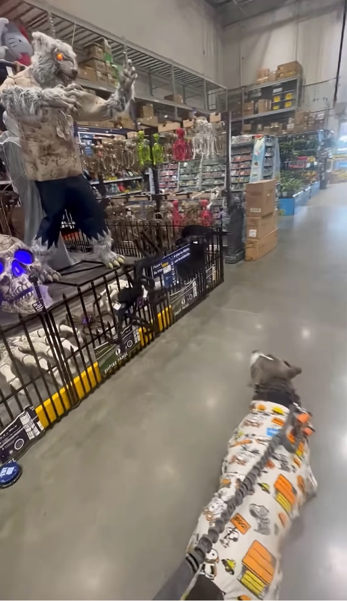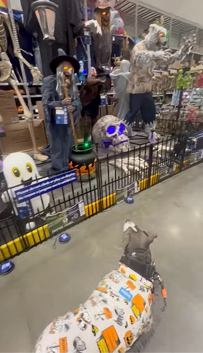 アメリカ・ニューヨーク州チェスターのホームセンターで撮影された今回の動画には、ハロウィンのデコレーションを見たイヌの素直なリアクションが捉えられています。