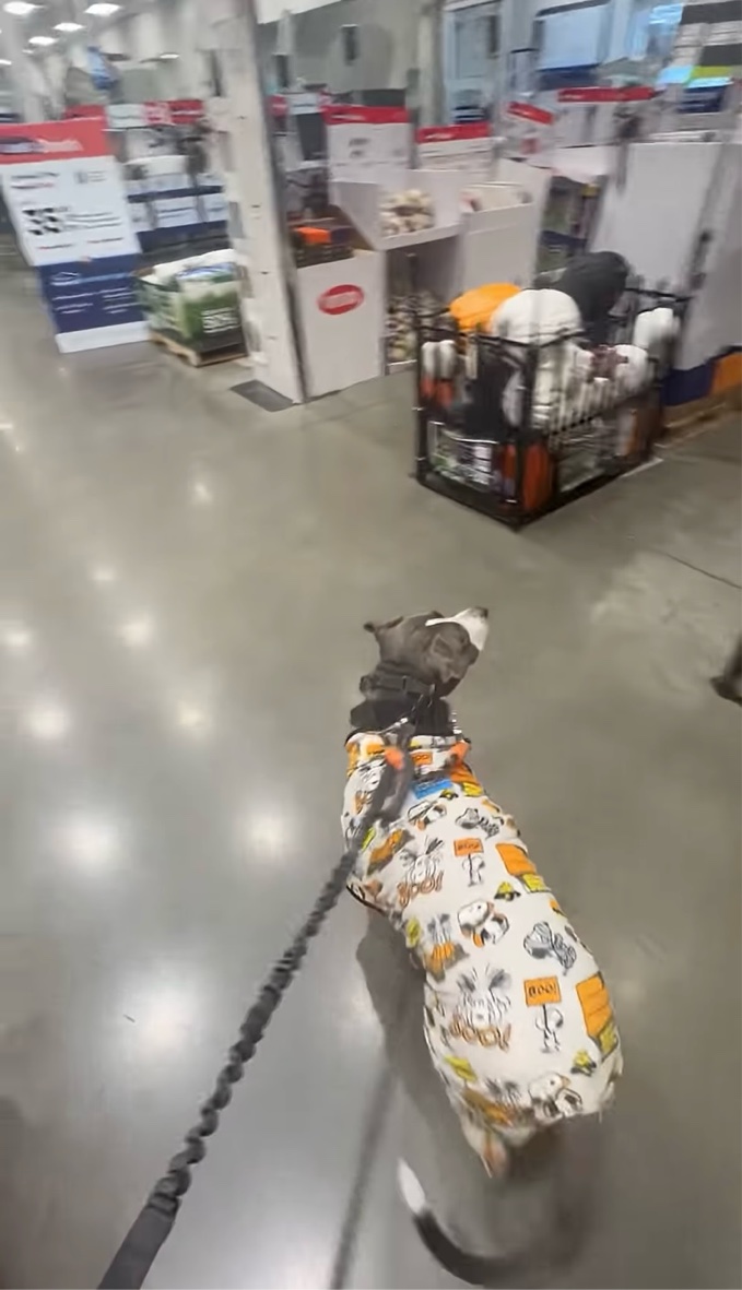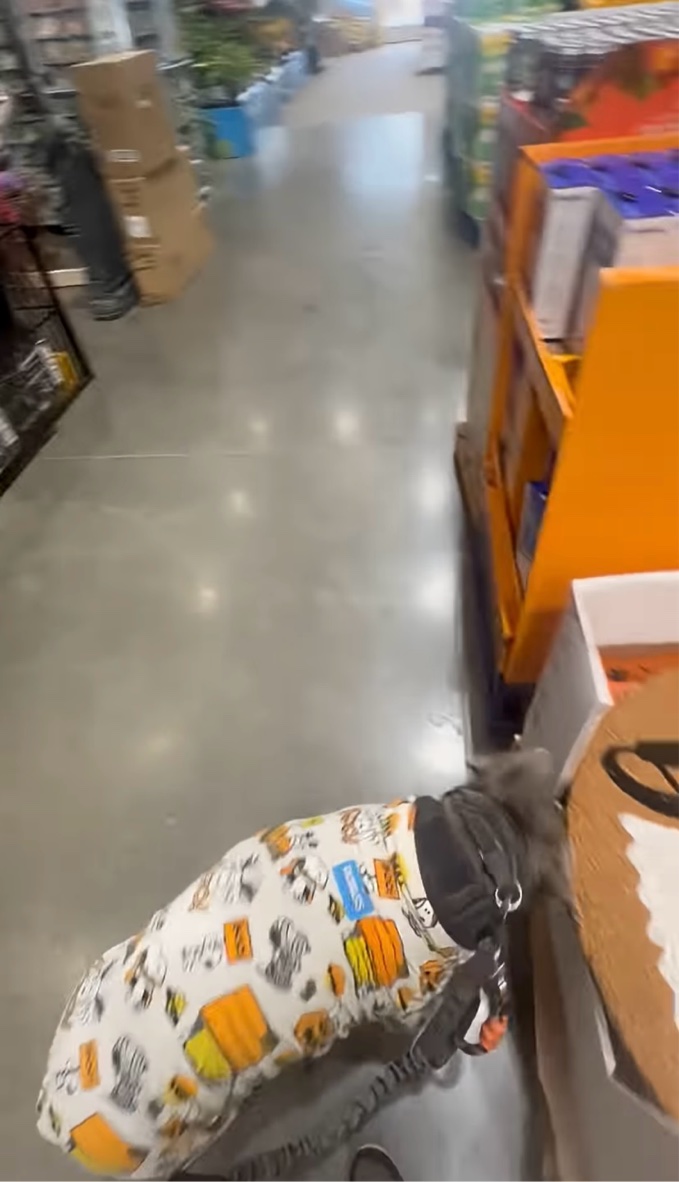 ハロウィン一色に彩られた店内を飼い主さんと歩いていたこちらのイヌ。